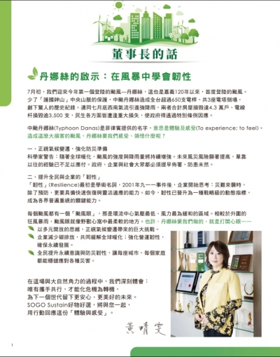 在這場與大自然角力的過程中,我們深刻體會:唯有攜手共行,才能化危機為轉機,為下一個世代留下更安心、更美好的未來。SOGO Sustain好物好選,將與您一起,用行動回應這份「體驗與感受」。