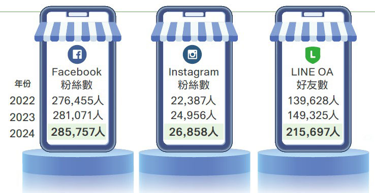 APP是消費者掌握檔期促銷、參與贈獎的重要管道,於綠色行銷扮演關鍵角色。2024年全台發出4,500萬份電子報,於全年DM占比首度突破九成,各店電子報占比皆提升,省紙量相當於少砍6.5萬棵樹。